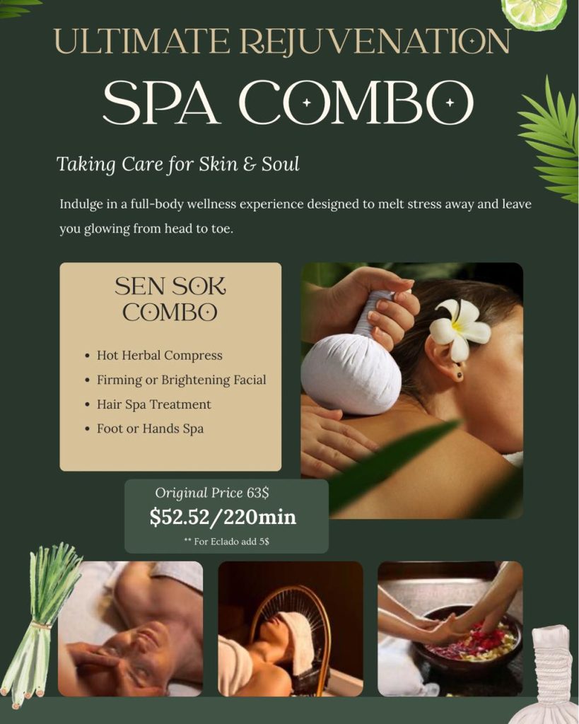 Step into a sanctuary of calm at Dai Sensok Spa with our 220-minute Sen Sok Combo — a complete head-to-toe indulgence. Enjoy a soothing hot herbal compress, a glow-enhancing facial, a deeply nourishing hair spa, and your choice of a relaxing foot or hand treatment.